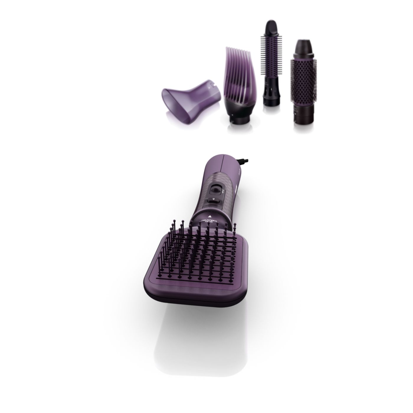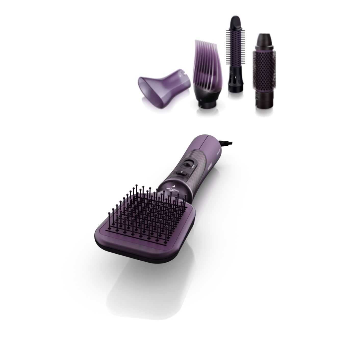 Този Air Styler разполага с 5 приставки за създаване на различни прически – от естествено изправена коса до дефинирани вълни и обем в корените.