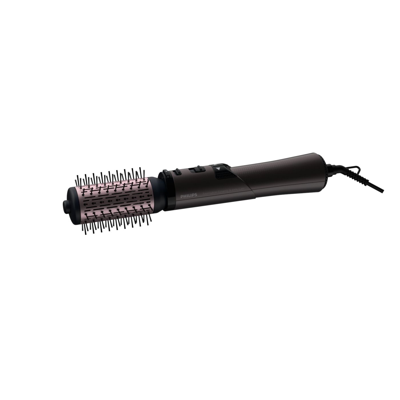 Естествен косъм на голямата приставка, прибиращи се зъбци на малката приставка, неусукващ се кабел, бутони за въртене в двете посоки, керамичи приставки, йонизация, една от най-силните четки на пазара, другите са под 1000W